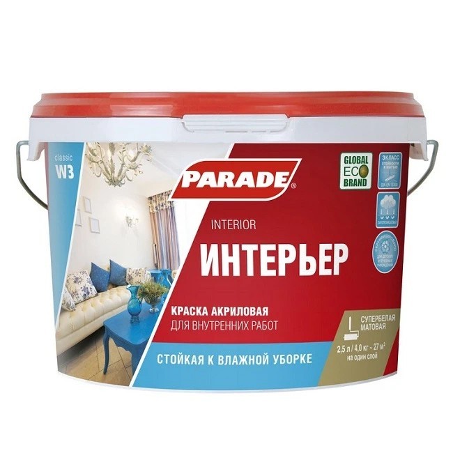 Краска Parade Classic W3 Интерьер для стен и потолков белая акриловая 2,5 л