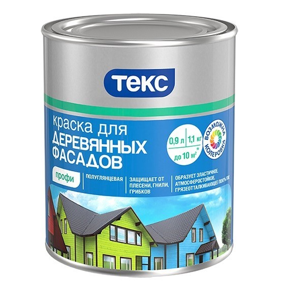 Краска Текс Профи - специализированная краска для фасадов из дерева. Предназначена для окраски пиленых и строганных, новых и ранее окрашенных деревянных поверхностей: фасадов, окон, дверей, перил и т.д. внутри и снаружи помещений за исключением полов. Защищает от плесени, гнили, грибков. Образует эластичное, атмосферостойкое, грязеотталкивающее покрытие. Не рекомендуется применять для окраски бревен. Колеруется по каталогам цветов Текс. Основа D предназначена для машинной колеровки и используется только в колерованном виде. Окрашиваемая поверхность должна быть сухой и влажность древесины должна быть менее 20%. Во время обработки и высыхания состава температура воздуха должна быть выше +5°С, а относительная влажность воздуха – ниже 80%. Окраску следует производить заблаговременно до выпадения вечерней росы, так как под воздействием влаги свежая лакокрасочная пленка может тускнеть. Наносится кистью, валиком или распылением. Расход на 1 слой: 8 - 11 м2 /л по строганой поверхности древесины; 6 - 8 м2 /л по пилёной поверхности древесины. Время высыхания - 24 часа, следующий слой можно наносить через – 48 часов. Внимание! При понижении температуры и увеличении относительной влажности воздуха время высыхания увеличится. Особенности краски для деревянных фасадов Текс Профи: специализированная краска для фасада из дерева; защищает от плесени, гнили, грибка; образует эластичное атмосферостойкое, грязеотталкивающее покрытие; подтвержденная протоколом испытаний долговечность покрытия - 7 лет.
