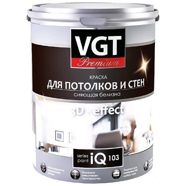 Краска VGT Premium IQ103 акриловая, для стен и потолков, сияющая белизна 10 л