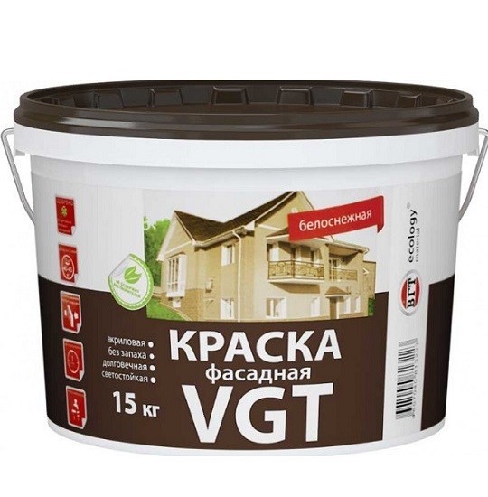 Краска VGT ВД-АК-1180 фасадная белоснежная 15 кг
