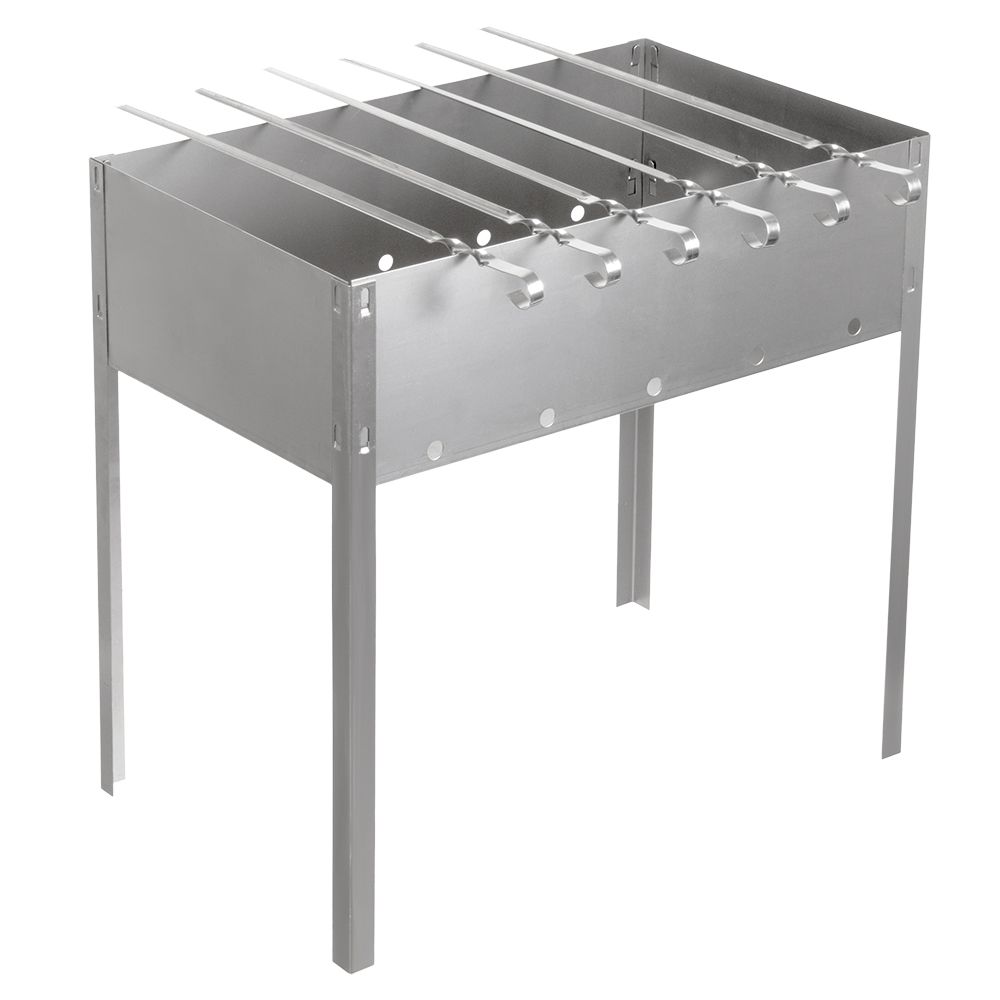 Сборный переносной мангал предназначен для приготовления шашлыка на открытом воздухе. Изготовлен из нержавеющей стали, хорошо поддерживает жар. На мангале можно расположить 6 шампуров (в комплекте). В разобранном виде мангал очень компактен, не займет много места в багажнике автомобиля. Простота и легкость конструкции мангала обеспечивают его быструю сборку и длительную эксплуатацию.