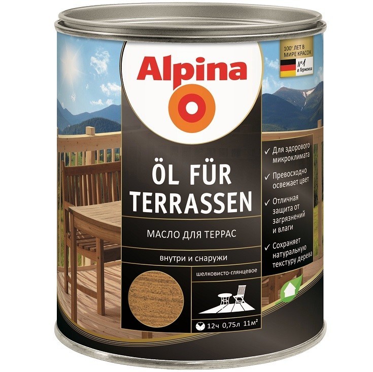 Масло Alpina для террас, шелковисто-глянцевое, среднее 0,75 л
