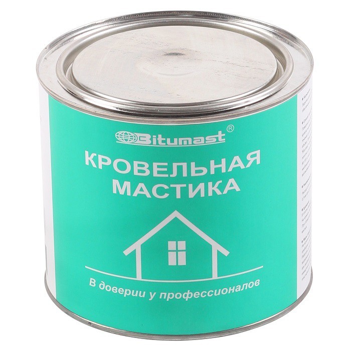 Кровельная мастика Bitumast представляет собой состав на основе высококачественного кровельного битума, органического растворителя, пластификатора, наполнителя и гербицидной добавки. Она совместима с большинством битумных и битумно-полимерных материалов, обладает густой консистенцией, не растекается в горизонтальных швах и трещинах. Содержит гербицид, препятствующий росту растений, а также распространению мхов и лишайников в кровельном полотне. Не содержит толуола и других токсичных растворителей. Кровельная мастика Bitumast применяется для заделки швов и трещин кровельных покрытий, герметизации мест примыканий, укладки рулонных кровельных материалов, обеспечения пароизоляции при устройстве кровельных систем. Рекомендации по применению. Перед применением кровельную мастику Bitumast следует тщательно перемешать по всему объему. При необходимости возможно разбавление уайт-спиритом, сольвентом или бензином-растворителем (не использовать автомобильный бензин, так как его пары могут быть ядовиты). При работе в условиях отрицательных температур кровельную мастику рекомендуется отогреть в тепляках в течение суток при температуре не менее +15 ºС. При нанесении мастики поверхность должна быть сухой, предварительно очищенной от грязи, непрочных остатков старого покрытия, снега и наледи. Пористые основания необходимо обработать битумным праймером. Влажные поверхности рекомендуется просушить при помощи газовых горелок. Мастика наносится при помощи шпателя, кисти или швабры. Кровельную мастику допускается использовать при окружающей температуре не ниже -5 ºС и отсутствии осадков. Средний расход материала для создания одного слоя рекомендуемой толщиной 0,5 мм составляет 0,5 л/м2. Условия хранения. Хранить кровельную мастику необходимо в плотно закрытой таре при температуре от -30 до +50 ºС. Предохранять от воздействия влаги и прямых солнечных лучей, вдали от нагревательных приборов и открытых источников огня. Не хранить в жилых помещениях и в контакте с продуктами питания. Держать в недоступном для детей месте. Гарантийный срок хранения кровельной мастики при условии герметичной упаковки составляет 24 месяца. Меры предосторожности. Не использовать мастику внутри жилых и замкнутых помещений. Кровельная мастика огнеопасна, работы с ней проводить на открытом воздухе, не курить. Исключить наличие нагревательных приборов и открытых источников огня. Не допускать попадания кровельной мастики на кожные покровы, в глаза и пищевод, применять защитные костюмы, перчатки и очки. При попадании кровельной мастики на кожу – удалить ветошью и смыть загрязнение мыльной водой. При попадании кровельной мастики в глаза – промыть большим количеством проточной воды и при необходимости обратиться за медицинской помощью. При попадании кровельной мастики в пищевод – не вызывать рвоту, немедленно обратиться за медицинской помощью и показать этикетку.