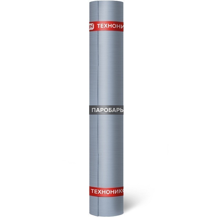 Мембрана Технониколь Паробарьер СФ 1000 представляет собой рулонный пароизоляционный самоклеящийся битумосодержащий материал. В качестве клеящего слоя используется смесь стирольных полимеров и битума повышенной клейкости. Нижняя поверхность материала закрыта легкосъемной пленкой, с лицевой стороны – алюминиевая фольга. Масса материала 1000 гр/м2. Материал армируется стеклосеткой. Разрывные характеристики позволяют выдерживать вес человека стоящего между гофрами профлиста на пароизоляции, при этом материал не рвется и не растягивается как полиэтиленовые пароизоляционные материалы. Паробарьер С полностью паронепроницаем. Он предназначен для устройства пароизоляции в конструкциях кровли с несущим основанием из оцинкованного профилированного листа, а также как временную кровлю до укладки всей кровельной конструкции во всех климатических районах по СНиП 23-01-99*, при любых температурах окружающей среды не ниже -25 оС. При отрицательных температурах для приклеивания к поверхности требуется подогрев материала фенами или горелкой. Паробарьер СФ 1000 применяют в зданиях всех влажностных режимов внутренних помещений, включая влажный и мокрый (бани, бассейны и т. д.). Материал не оказывает влияния на определение класса функциональной пожарной опасности конструкций крыши и может быть использован в покрытиях любых зданий. Работы производятся согласно «Руководству для проектирования и устройства кровель из битумно-полимерных материалов Корпорации Технониколь». Хранить материал следует в вертикальном положении в один ряд по высоте в защищенном от воздействия влаги и солнца месте, на расстоянии не менее 1 м от нагревательных приборов, при температуре окружающей среды от - 35 до + 35 оС.