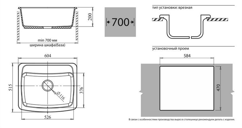 Диаметр отверстия - 3 1/2 ". Монтажная ширина - 47 см. Монтажная длина - 58,4 см. Основные чаши - 1. Отверстие под смеситель - 1. Поверхность - Матовая |