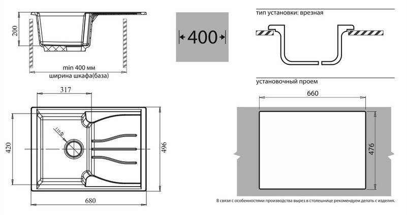 С крылом. Расположение крыла - слева, справа.. Диаметр отверстия - 3 1/2 ". Монтажная ширина - 47,6 см. Монтажная длина - 66 см. Основные чаши - 1. Поверхность - Матовая |