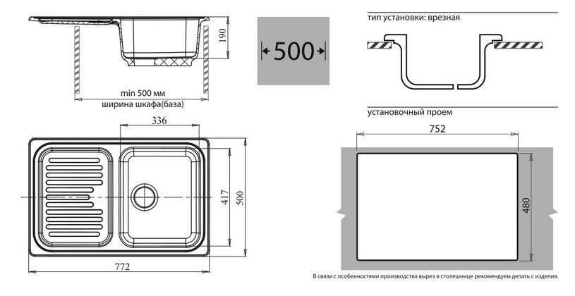 Компания GranFest™ представляет на российском рынке кухонные мойки из искусственного камня. Международные сертификаты подтверждают, что при изготовлении моек GranFest™ применяются исключительно экологически чистые и безопасные материалы. Кухонная мойка GranFest Standart GF-S780L станет удачным и функциональным решением для обустройства Вашего рабочего пространства на кухне. Глубокая и просторная чаша удобна для мытья крупной посуды. Широкое крыло подойдет для использования в качестве дополнительной рабочей поверхности, его можно применять как сушилку для посуды, можно поставить горячую кастрюлю или сковороду. Крыло имеет рифленую поверхность, а значит с него не съедет посуда. Раковина универсальная, т.е. оборачиваемая - расположение крыла с правой или левой стороны по выбору. Характеристики кухонной мойки GranFest Standart GF-S780L: Общий размер: 772х500 мм Размер чаши: 3336х417х190 мм Установочный проем: 752х480 мм Размеры упаковки: 950х560х280 мм В комплекте с мойкой поставляется: сифон в сборе российского производства (выпуск с переливом 3 1/2") Мойки GranFest Standart, входящие в серию Мрамор, состоят на 80% из натуральной мраморной крошки, что придает изделиям прочность и устойчивость к внешним воздействиям, универсальная мойка приобретает благодаря этому внешний вид натурального камня. 20% высококачественной полиэфирной смолы надежно связывает мелкие частички мрамора, благодаря чему материал становится непористым, за ним легко и приятно ухаживать. Мойки защищены слоем - гелькоута. В отличии от обычных полиэфирных смол, гелькоут устойчив к воздействию ультрафиолетовых лучей, ударопрочен, не поддается механическим повреждениям. Преимущества кухонных композитных моек GranFest: Ударопрочность. Устойчива к царапинам. Отсутствие пористости. Защита от размножения бактерий. Гидрофобность. Защита от воздействия красящих веществ. устойчива к воздействию высоких температур. Экологичность. Особо прочный защитный слой позволяет вам тратить минимум усилий при уходе за мойкой. Чтобы кухонная мойка GranFest как можно дольше сохраняла свой первоначальный вид, следуйте рекомендациям производителя по уходу за изделием.