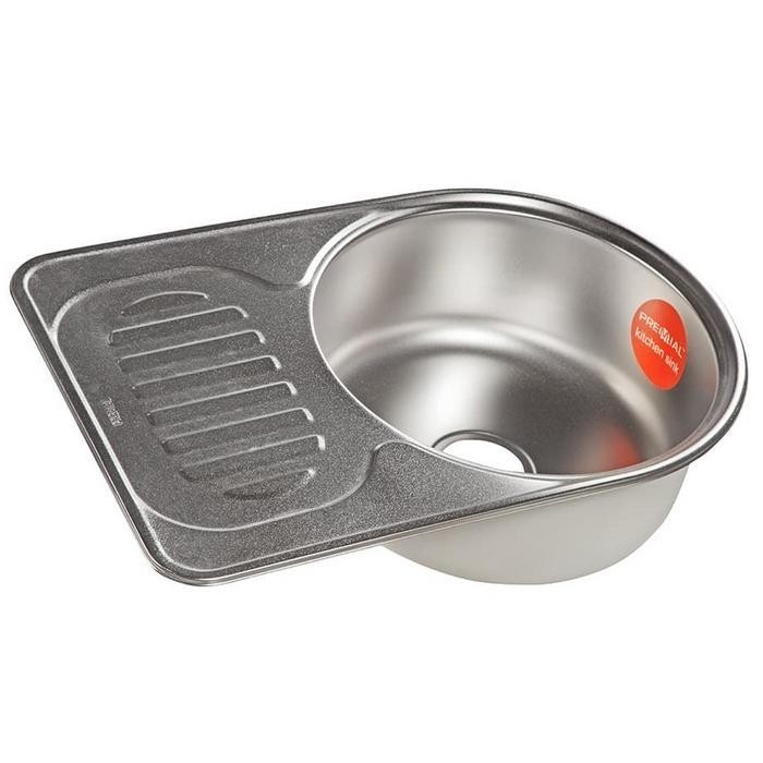 Кухонные мойки «Premial kitchen sinks» из нержавеющей стали завоевали популярность на мебельном рынке и абсолютно подтверждают подход компании к данной продукции: мойки должны быть комфортными в повседневном использовании. Кухонная врезная мойка Premial 6745 с матовой поверхностью изготовлена из нержавеющей стали марки 201, толщина металла 0,8 мм. Мойка снабжена глубокой вместительной чашей и большим удобным рифленым крылом. Раковина универсальная, т.е. оборачиваемая - расположение крыла с правой или левой стороны по выбору. Моечное «крыло» — это дополнительная зона, на которой можно: обрабатывать сырые продукты; разморозить мясо, рыбу, не пользуясь микроволновкой; поставить горячую кастрюлю или сковороду; использовать как сушилку для посуды: для начала только что вымытые чашки/тарелки располагают на крыле, а затем их уже можно расставить в шкафах; крыло имеет рифленую поверхность, а значит с него не съедет посуда, плюс к этому оно имеет едва заметный уклон, позволяющий направить жидкость с крыла в сток мойки. Наружный корпус кухонной мойки обрабатывается звукопоглощающим составом. Обливка снижает шум струй воды и несет дополнительный комфорт в использовании. В комплект входят водосливная арматура: сифон, выпуск/слив, перелив, гофра, крепления к столешнице и уплотнитель. Мойки упаковываются в транспортную тару. Характеристики: Установка: врезная Форма мойки: круглая с крылом Общий размер: 670*450*200 мм Размер чаши: d360 мм Толщина: 0.8 мм Поверхность: матовая Материал: сталь 201 Отверстие под смеситель - нет Перелив: есть Выпуск: 3 1/2 Мойки Premial® производят из нержавеющей стали марки AISI 201. Легированный хромом и марганцем нержавеющий сплав влияет на общие свойства моек: равномерная твердость, стойкость структуры к статическим и динамическим нагрузкам. Сталь 201й марки является аустенитным сплавом, поэтому она прочная, жаростойкая и жаропрочная, пригодная для эксплуатации в сложных и агрессивных условиях. Сталь 201я — инертная и гигиеничная. На практике это означает, что мойка из 201й стали не воздействует на продукты питания, не прогибается из-за горячей или ледяной воды, чистится моющими средствами, не боится кислоты или щелочи. Мойки используются как в домашних условиях, так и на предприятиях общественного питания. Мойки Premial® получаются легкими и компактными, несмотря на толщину металла 0,8 мм.