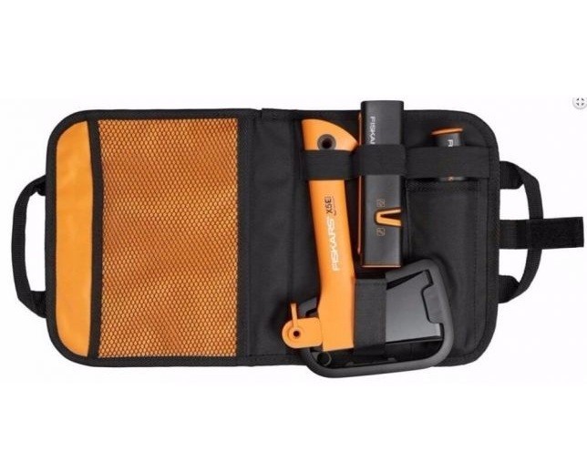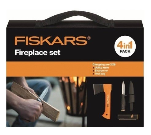 Набор инструментов Fiskars 1025441 Fireplace set представляет собой удобный, компактный набор инструментов в сумке. Пригодится на рыбалке, в походе или в путешествии на машине. Набор упакован в картонную подарочную коробку. Подойдет в качестве подарка мужчине. В набор входит: Топор Fiskars Camping Axe XXS X5 (1015617). Нож Fiskars Universal knife with sharpener (1023618). Точилка Fiskars Xsharp™ (120740). Сумка. Топор Fiskars XXS X5 идеально подходит для кемпинга. Небольшой размер позволяет носить его на поясе, он может заменить нож во время путешествия. С его помощью можно легко нарубить дров и щепок для костра, срубить дерево для палатки и настила, сделать множество работ, которые возникают у владельца садового участка. Топор поможет выполнить некоторые плотницкие работы. Лезвие имеет тонкий, широкий край, который помогает делать точные аккуратные надрезы в древесине. Новое 3D сцепление "impoves" обеспечивает безопасность пользователя, создавая лучшее сцепление при использовании. Легкая и долговечная ручка из материала FiberComp™ уменьшает усталость и надежно фиксирует рабочую часть инструмента. У топора правильный баланс между обухом и ручкой для безопасного, комфортного и эффективного использования. Универсальный нож Fiskars с точилом идеально подходит как для походных условий, так и для домашнего использования. Имеет гладкое лезвие из нержавеющей стали длиной 90 мм и пластиковые ножны, которые делают переноску ножа абсолютно безопасной. Встроенная в чехол точилка всегда под рукой. Оснащен трехкомпонентной рукояткой с контурным покрытием из материала SoftGrip. Точилка Fiskars Xsharp™ очень легкая, что обеспечивает удобство переноски; она подходит как для левшей, так и для правшей. С помощью легкого нажатия на одну из сторон точилки Fiskars Xsharp™ можно выбрать одно из двух положений для заточки: одно предназначено для топоров, другое – для ножей. Мягкая накладка, используемая на нижней стороне точилки Fiskars Xsharp™, предотвращает скольжение во время работы и гарантирует при необходимости легкую разборку инструмента для его очистки. Надежный керамический шлифовальный камень гарантирует долгий срок службы инструмента. Он затачивает топоры и ножи под определенным углом, обеспечивая превосходное качество работы инструмента.