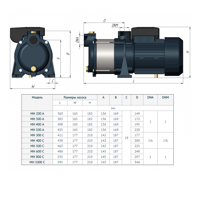 Насос поверхностный Unipump МН 400С предназначен для перекачивания чистой воды, не содержащей абразивных и волокнистых примесей, из неглубоких скважин, колодцев, различных резервуаров, для использования в системах повышения давления, полива и орошения, для подачи воды в бассейны, фонтаны, моечное оборудование и для других хозяйственно-бытовых нужд. На базе данных насосов можно создавать автоматические насосные станции. В воде не должны содержаться частицы с линейным размером не более 0,5 мм, общее количество механических примесей — не более 100 г/м³, диапазон рабочих температур воды — от +1ºС до +40ºС. Основные характеристики: Мощность: 1500 Вт Производительность макс: 150 л/мин Напор макс: 48 м Диаметр входного и напорного отверстий: 1¼x1¼ Максимальная высота всасывания: 8 м Параметры электросети — ~ 220 ± 10%, 50Гц. Температура перекачиваемой жидкости — +1...+40ºС. Материал корпуса насоса – нержавеющая сталь Устройство и эксплуатация: В отличие от одноступенчатых, многоступенчатый насос имеет несколько рабочих колес. Перекачиваемая жидкость из выхода первого рабочего колеса поступает на вход второго, из выхода второго на вход третьего и т.д. Каждое рабочее колесо повышает давление перекачиваемой жидкости, таким образом, на выходе многоступенчатого насоса создается высокий напор. Многоступенчатый центробежный насос фактически представляет собой несколько последовательно соединенных одноступенчатых насосов, помещенных в единый корпус. На базе многоступенчатого насоса, добавив автоматику, можно создать автоматическую насосную станцию. Достоинства поверхностных насосов центробожного типа Unipump: низкий уровень шума пологие напорно-расходные характеристики (высокий напор сохраняется в области больших подач); высокий КПД насоса; возможность последовательного или параллельного соединения насосов при работе на один трубопровод; плавное протекание переходных процессов при изменении режима работы гидросистемы; способность к «самовсасыванию»; невысокая стоимость насоса из-за использования в конструкции насоса сравнительно дешевых конструкционных материалов. простота технического обслуживания и эксплуатации; высокая надежность в работе; большие подачи жидкости;