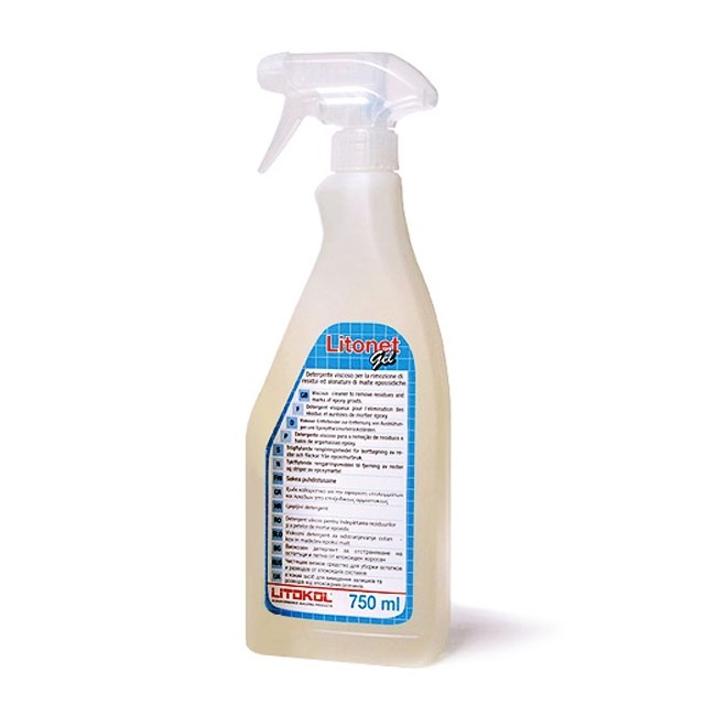 Очиститель Litokol Litonet Gel представляет собой жидкое чистящее средство для выведения пятен и обезжиривания напольных и настенных керамических покрытий. Средство идеально подходит для очистки поверхности любых видов плитки (в том числе котто), керамогранита, керамики, стекломозаики, цемента, клинкера, натурального камня (как полированного, так и неполированного). Применяется для очистки вертикальных поверхностей. Перед использованием средства для очистки изделий из полированного натурального камня необходимо проверить поверхность на устойчивость к воздействию кислот (оникс, мрамор, травертин и т.д.), так как это может привести к потере блеска поверхности. В том случае, если есть сомнения в устойчивости облицовки к кислотным реагентам, перед началом использования выполнить пробное нанесение Litonet Gel и очистку поверхности на небольшом участке. Сфера применения Litokol Litonet Gel: при разведении водой в соотношении 1:20 и 1:30 идеально подходит для обычной и частой очистки поверхности от въевшейся грязи; при разведении 1:3 или 1:5 подходит для удаления воска с поверхностей котто и натурального камня; в соотношении с водой от 1:1 до 1:10 удаляет остатки эпоксидной затирки; при использовании в чистом виде действует как пятновыводитель для керамогранита. Меры предосторожности при работе с Litokol Litonet Gel: Хранить в местах недоступных для детей. При работе соблюдать меры индивидуальной безопасности, использовать защитную одежду, защитные очки и резиновые перчатки. Избегать попадания Litonet в глаза и на кожу. При попадании в глаза промыть их большим количеством воды и обратиться к врачу. При попадании на кожу немедленно смыть большим количеством воды с мылом. Перед началом работ защитить мебель, двери и другие поверхности, которые могут быть повреждены при контакте с Litonet.