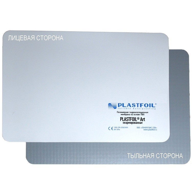ПВХ мембрана Plastfoil Art — полимерная гидроизоляционная мембрана, неармированная, с противомикробными добавками и защитой от ультрафиолетового излучения. Мембрана изготавливается методом экструзии и каландрования из суспензионного поливинилхлорида, соответствующего ГОСТ 14332-78, с добавлением наполнителей и технологических добавок. Интегрированные в верхний слой материала добавки обеспечивают устойчивость к воздействию УФ излучения. Достаточное количество пластификаторов гарантирует необходимую эластичность и гибкость для удобства монтажа в условиях низких температур. Plastfoil Art предназначена для гидроизоляции кровли, в том числе в местах примыканий. Применяется для сопряжения с различными кровельными конструкциями, такими как трубы, воронки, мачты, и изготовления элементов усиления. Возможно применение для устройства балластных кровель. Может быть использована на любых объектах: на кровлях производственных и жилых зданий, выставочных, складских и торговых комплексов. Особенности применения: Монтажные работы по укладке ПВХ-мембран производить строго с действующим руководством по применению в кровлях полимерной мембраны Plastfoil ®. Швы свариваются внахлест с помощью автоматического и ручного сварочного оборудования с использованием прикаточных роликов и возможностью регулирования температуры воздуха не менее чем до +600°С. Полимерная мембрана применяется во всех климатических зонах, при этом укладку ПВХ мембраны следует проводить при температуре окружающего воздуха от -20°С до +50°С. Применение химических комплектующих, таких как контактный клей или очиститель мембран, возможно при температуре окружающего воздуха не ниже +5°С. Рулоны должны храниться в горизонтальном положении на паллетах в заводской упаковке без прямого воздействия солнечного света, дождя и снега. При соблюдении условий хранения срок годности материала не ограничен.