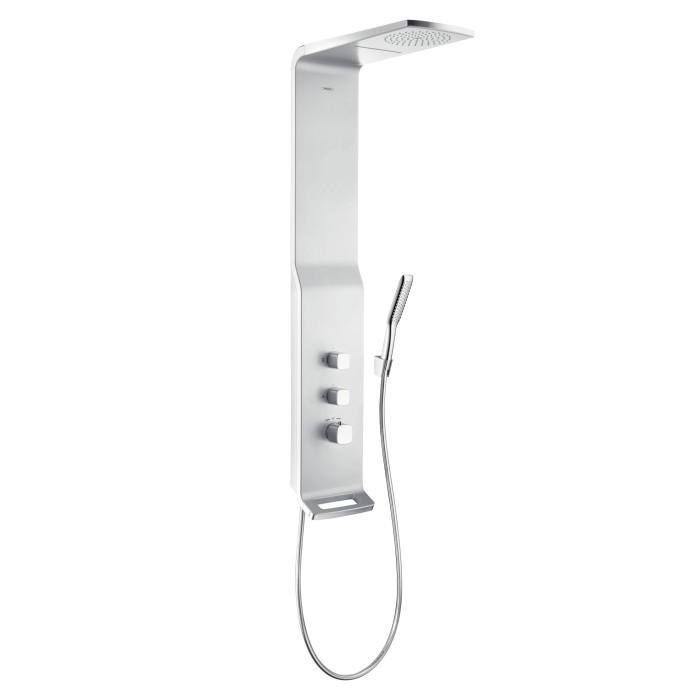Душевая панель Hansgrohe Raindance Lift 27008000 состоит из термостата, верхнего душа, держателя, шланга и ручного мини-душа. Ручной душ имеет один тип струи, а верхний душ – два: RainAir и ливневая струя. Переключение режимов и регулировка температуры происходит при помощи эргономичных вентилей, расположенных на оптимальной высоте. В панель встроен термостат, поддерживающий постоянную температуру воды и обеспечивающий защиту от ожогов. Вода равномерно распределяется по большому душевому диску – все Ваше тело окутано крупными каплями воды. Технология AirPower позволяет смешивать воду с воздухом, благодаря чему струящаяся по телу вода дарит ощущение блаженства. Ведь вода, обогащенная воздухом, делает капли объемнее, легче и мягче. Благодаря этому вы не только получаете больше удовольствия от принятия душа, но и сокращаете расход воды. Цветовое решение изделия (хром/матовый хром) позволяет идеально дополнить интерьер практически любой ванной комнаты. А технология QuickClean дает возможность мгновенно удалить загрязнения и известковый налет. Нужно лишь потереть пальцами по высококачественному, особо прочному силикону. В результате этого известковые отложения и загрязнения исчезают, позволяя вам всегда наслаждаться объемной струей. Особенности душевой панели Hansgrohe Raindance Lift 27008000: верхний душ Raindance S 180 Air; размер душевого диска: 180 мм; длина держателя для душа: 420 мм; регулировка высоты: 200 мм; тип струи (верхний душ): RainAir, ливневая струя; расход воды для струи RainAir (при 3 бар): 14 л/мин.; расход воды для ливневой струи (при 3 бар): 17 л/мин.; защита от ожогов при 40°; регулируемый ограничитель температуры горячей воды; изолированная подача воды; межосевое подключение: 150 мм ± 12 мм; соединительная резьба G ½; место установки: стена; вид монтажа: внешний монтаж; подходит для проточных водонагревателей; класс шума: I; класс расхода воды: B, O.