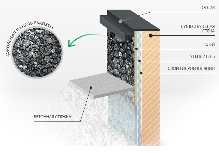 Цокольная панель Eskosell Кварцит представляет собой современный и экологически чистый строительно-отделочный материал, основой которого является массивная и прочная цементно-стружечная плита толщиной 8 мм. Верхний слой представлен крошкой из натурального камня, не окрашен. Панели Eskosell изготавливают из натуральных природных материалов. Твердая основа панели отвечает всем общепринятым европейским нормам и стандартам. Выпускается в России в соответствии с ГОСТ 26816-86 на самом современном оборудовании с применением инновационных технологических методик. Надежно защищает дом от всевозможных повреждений, не горит и не выделяет вредные и опасные для человека и окружающей среды вещества. Не поддается воздействию ультрафиолетовых лучей, не изменяет свою структуру и свойства при перепадах температур. Каменная крошка и слой эпоксидной смолы образуют водонепроницаемый слой, тем самым выполняя не только декоративную, но и защитную функцию. Использование натуральной природной каменной крошки крупных фракций (от 3 до 6 мм) – отличительная особенность Eskosell, которая придает панелям особый колорит, выгодно отличает поверхность от обычной штукатурки и сохраняет свой цвет на долгие годы. Высокое качество панелей Eskosell обеспечивается строгим контролем качества на всех этапах производственного цикла. Свойства панелей Eskosell: Экологичность: отсутствие асбеста, формальдегидных смол и др. Ударопрочность. Огнестойкость и пожаробезопасность. Биостойкость, устойчивость к воздействию термитов, грибков, насекомых и грызунов. Стойкость к воздействию атмосферной среды, водостойкость и морозостойкость. Дополнительная звукоизоляция. Пригодность для использования во всех климатических районах. Преимущества панелей Eskosell: Простота и высокая скорость монтажа, не требующая специалистов высокой квалификации. Подходят для всех типов фундаментов. Возможность круглогодичного монтажа, а также сухого монтажа с отсутствием «мокрых» процессов. Многообразие вариантов декоративных покрытий и архитектурных решений, возможность комбинирования с другими видами отделочных материалов. Прогнозируемый срок службы декоративного покрытия в условиях умеренного климата и открытой промышленной атмосферы не менее 15 лет. Натуральный камень устойчив к ультрафиолетовому излучению и с годами не теряет цветовой насыщенности. Высокая прочность плиты и стойкость к ударным нагрузкам.