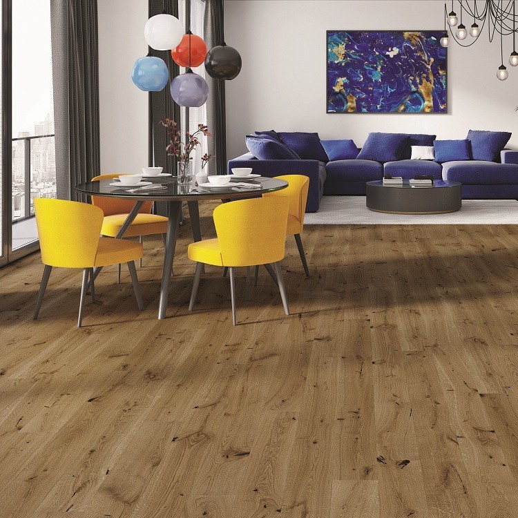 Medio – паркетная доска Barlinek в новом измерении! Паркетная доска Barlinek Medio Дуб Azores – это однополосная дубовая доска темно-коричневого цвета. Поверхность покрыта натуральным маслом. Паркетная доска, обработанная маслом, приобретает дополнительную прочность, а при отвердевании под УФ-лучами покрытие становится антистатическим, теплым и полуматовым. Текстура натурального дерева и глубокий цвет подчеркнуты брашированием. Природные акценты в интерьере никогда не теряют своей популярности. Однополосная паркетная доска самого высокого качества – это эксклюзивная и наиболее эффектная форма презентации природной красоты дерева. Данное напольное покрытие выглядит красиво и презентабельно. Эффект браширования (искусственного состаривания) подчеркивает структуру древесины. Такая доска будет идеальным напольным покрытием для помещений в стиле винтаж или скандинавском. Благодаря высокой механической прочности паркет из древесины дуба устойчив к повреждениям, царапинам, выщерблению. Кроме того, это исключительно долговечный материал, практичный в эксплуатации и уходе. Выдерживает влажную уборку. Удобное замковое соединение гарантирует быстрый и простой монтаж. Преимущества паркетной доски Barlinek: 100% из дерева. Изготовленная из натурального дерева паркетная доска Barlinek – это природная и благородная продукция. Деревянные полы являются здоровыми и отличаются более высокой прочностью по сравнению с искусственными имитациями. В отличие от ламината они теплые на ощупь, не электризуются и не притягивают пыль и клещей, именно поэтому представляют собой идеальное решение для лиц, страдающих аллергией. Идеально приглушают акустические эффекты, а благодаря своим свойствам поглощения влаги регулируют микроклимат в помещении. Может использоваться на основаниях с подогревом. Не все деревяные полы могут использоваться в качестве полов с подогревом. Паркетная доска Barlinek, благодаря своей многослойной конструкции, прекрасно проводит тепло и может с успехом эксплуатироваться на основах с подогревом – как с электрическим, так и с водным. Это только одно из ее преимуществ по сравнению с полами из массива древесины. Монтаж полов с подогревом можно реализовать двумя способами: в плавающей системе или при помощи приклеивания досок к основанию. Стабильная конструкция. Наши климатические условия представляют для деревянных полов настоящую проблему. Натуральное дерево изменяет влажность в зависимости от внешних показателей влажности. Именно поэтому кажется, что традиционные деревяные полы набухают, скрипят или между досками образуются щели. Однако, это не относится к современной паркетной доске Barlinek! Конструкция доски состоит не из одной, а из трех слоев дерева, расположенных крест-накрест один к другому. Именно такая конструкция нивелирует работу натурального дерева, обеспечивает баланс между отдельными слоями, тем самым обеспечивая стабильность пола, даже в случае изменения климатических условий за окном. Лицевой слой – отборная древесина европейских или экзотических пород, покрытая лаком или маслом. Средний и нижний слои — перекрестная конструкция из древесины хвойных пород. Быстрый монтаж. Монтаж паркетной доски Barlinek может быть реализован в плавающей системе, то есть без использования клея, основываясь исключительно на испол