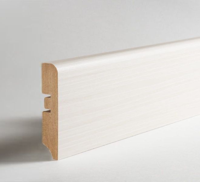 Плинтус МДФ Hannahholz Дуб перламутровый / Eiche Perlweiss, 2400х68×16мм. Основа плинтуса экошпон. В упаковке: 8штук. Система крепления: Крепление монтажный клей / мантажная планка.