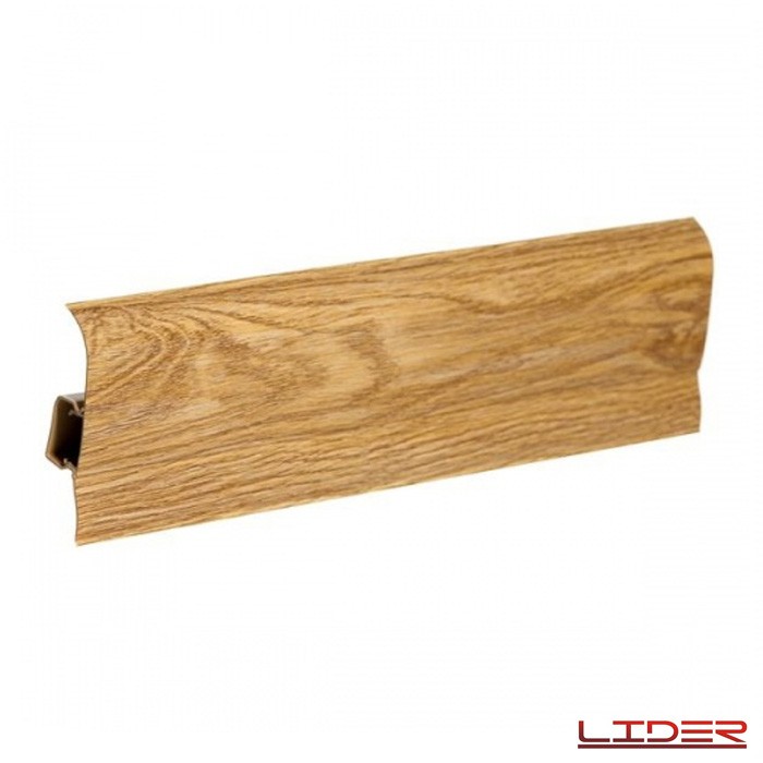 Плинтус напольный 75x23x2500 мм. Лидер 75, Дуб золотистый 752, Богатый выбор оттенков, разные размеры 75 мм и 62 мм, позволяют сделать данную продукцию конкурентоспособной. В производстве используется высококачественное сырье и красители от ведущих мировых производителей. Плинтус Лидер экологически безопасный и долговечный, глянцевый или матовый лак на долгие годы будет предохранять от царапин и действия ультрафиолета.