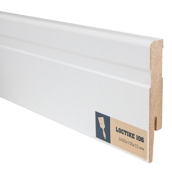 Плинтус под покраску Arbiton Loctike - это элемент отделки пола, благодаря которому можно создать уникальный интерьер в классическом или в современном стиле. Плинтус МДФ Arbiton Loctike 106 МР1002 белый 2400х100х15 мм не только выполняет функциональные задачи, но и поможет Вам создать неповторимый интерьер, соответствующий вашему вкусу и ощущениям. Благодаря возможности осуществить покраску плинтуса, можно создать даже в самой простом интерьере яркий контрастный акцент. Плинтус Arbiton Loctike сделан из практичного МДФ, не подвержен гниению и деформации из-за изменений температуры или влажности в помещении, антистатичен. МДФ, как основа плинтуса, изготавливается из экологически чистых материалов и не содержит вредные для здоровья человека фенол и эпоксидные смолы. Плинтус из такого материала универсален, он может использоваться с напольными покрытиями из различных материалов и обладает продолжительным сроком службы. Плинтус Arbiton Loctikeудобен в монтаже, поскольку он отлично гнется и не крошится при резке. Отлично компенсирует все неровности стен и полов. Его устанавливают при помощи монтажных металлических клипс, которые предварительно крепятся к стене с интервалом в 50 см, сборка проходит быстро, а при замене полов элемент отделки можно демонтировать и повторно установить. Для покраски необходимо использовать краски на водной основе, стойкие к истиранию. Преимущества плинтуса Arbiton Loctike 106 МР1002: Не боится влажности и перепада температур. Антистатичен, изготовлен из экологически чистых элементов. Плинтус МДФ можно окрашивать в любой цвет с применением красок на водной основе, латексных и акриловых (краски не должны содержать растворитель, ацетон). Эстетичный вид отделки - используется скрытый крепеж, который обеспечивает многократный монтаж и демонтаж профиля, а также соединительные элементы, позволяющие эффектно оформить углы и стыки.. Под покраску - да. Под покраску - да