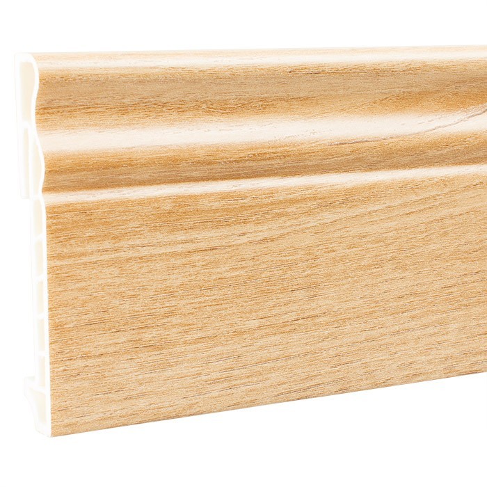 Плинтус Мастер Декор Стандарт - завершающий элемент интерьера без которого нельзя обойтись. Он скрывает зазор между стеной и напольным покрытием и необходим при укладке любого напольного покрытия, а также придает элегантность интерьеру. Плинтус Мастер Декор Стандарт изготовлен из ПВХ-композиции. Композитный материал – это современный, экологически безопасный материал, изготовленный из вспененного ПВХ с добавлением оксида кальция (мела) под высоким давлением и температурой. Изделия из данного полимера имеют плотность от 360 до 400 кг/м3. Благодаря этому плинтус из комопзита можно устанавливать в местах повышенного трения. Материал устойчив к механическим повреждениям и прочим воздействиям. Напольный плинтус нельзя повредить стульями, столами и прочей мебелью. Монтажные планки входят в комплект. Установка плинтуса — финальный этап отделки поверхности пола и укладки декоративных покрытий. Его грамотный выбор — залог долговечности ремонта, эстетичности помещения, удобства эксплуатации слаботочных сетей и электрокоммуникаций.