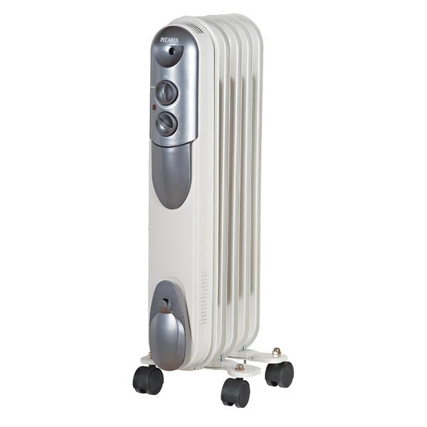 Данный радиатор предназначен для обогрева небольших помещений. Использование масла значительно увеличивает коэффициент полезного действия аппарата, т.к. масло обладает высокой теплопроводностью и очень долго остывает. Однако требования к безопасности масляных радиаторов – повышенные. Аппарат имеет несколько нагревательных рёбер, которые располагаются вертикально. Передняя продолговатая панель имеет рукоятку в виде углубления. Также под ручкой располагаются регулятор температуры (термостат) и переключатель режимов работы. Термостат позволяет поддерживать нужный уровень температуры длительное время. Модель отличается высоким КПД, низким уровнем создаваемого шума, не сушит воздух во время работы. В случае сильного перегрева или опрокидывания конструкции, специальные датчики автоматически приостановят обогрев. Транспортировка может осуществляться с помощью четырёх подвижных колёс. Особенности радиатора масляного Ресанта ОМПТ-5Н Три режима работы Радиатор имеет три режима обогрева, которые переключаются удобной ручкой. Термостат Прибор оснащен термостатом, который регулируется специальной ручкой и позволяет прибору автоматически поддерживать необходимую температуру. Визуальный контроль Световой индикатор позволяет контролировать рабочее состояние радиатора. Удобство перемещения Для удобства перемещения конструкция прибора оснащена колесами Преимущества радиатора масляного Ресанта ОМПТ-5Н Режим поддержания температуры; Современный дизайн; Три режима обогрева; Механическое управление; Малые габариты, небольшой вес.