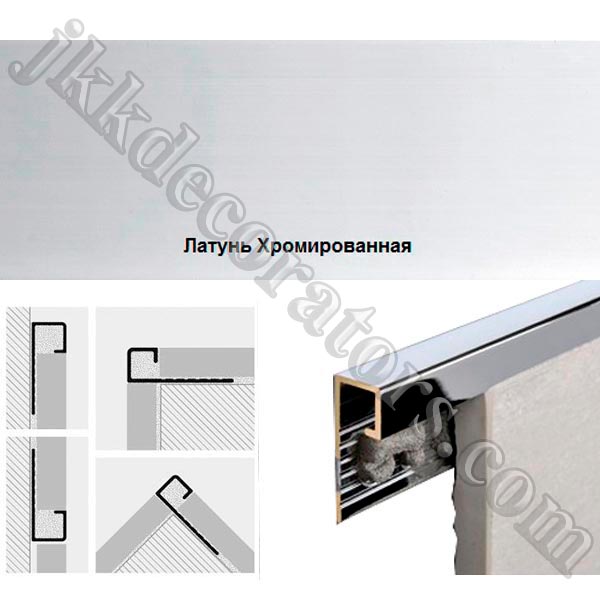 Раскладка для плитки наружная, 2,7м. Progress Profiles Латунь хромированная Projolly Square Pjqoc