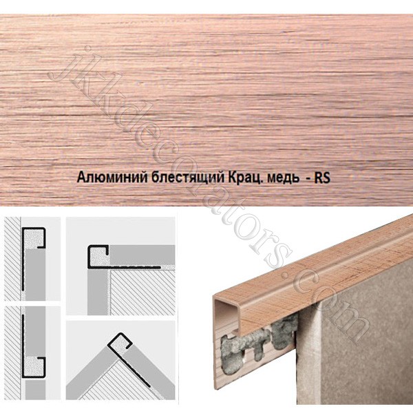 Раскладка для плитки наружная, 2,7м. Progress Profiles Алюминий крацованный медь Projolly Square Pjqrs