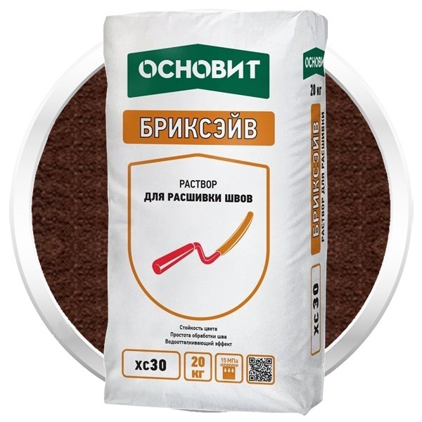 Раствор для расшивки швов Основит Бриксэйв XC-30 предназначен для отделки швов: кирпичной кладки, кладки из натурального и искусственного камня, клинкерной плитки и термопанелей. Раствор обладает консистенцией сырой земли. Может использоваться как для нового строительства, так и для обновления швов кладки. Подходит для внутренних и наружных работ. В качестве основания рекомендуются керамический, силикатный и клинкерный облицовочный кирпич, натуральный и искусственный камень, клинкерная плитка, термопанели. Работы следует выполнять при температуре воздуха и поверхности основания от 5 до 30 оС, влажность воздуха не должна превышать 70%. Свежие швы следует предохранять от слишком быстрого высыхания и беречь не менее 5-7 дней от воздействия неблагоприятных погодных условий (прямые солнечные лучи, сильный ветер, дождь). Преимущества применения раствора для расшивки швов Основит Бриксэйв XC-30: Удобство и простота выполнения работ. Защита от выцветания. Гладкий и ровный шов. Отсутствие высолов. Морозостойкость. Разнообразие цветовых решений. Основные свойства раствора для расшивки швов Основит Бриксэйв XC-30: Гранулометрический состав раствора обеспечивает удобство и простоту выполнения работ, создавая гладкий и ровный шов. Прочность материала ≥15 МПа обеспечивает максимальную долговечность и надежность в процессе эксплуатации. Состав растворов эффективно предотвращает появление высолов и белых подтеков на поверхности стен, а также обеспечивает стойкость цвета в процессе эксплуатации. Сухой способ нанесения расшивки позволяет выполнить работы максимально быстро. Разнообразие оттенков позволяет подобрать раствор в тон или контраст кирпичу.