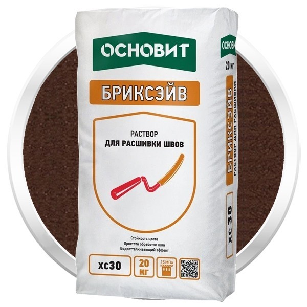 Раствор для расшивки швов Основит Бриксэйв XC-30 предназначен для отделки швов: кирпичной кладки, кладки из натурального и искусственного камня, клинкерной плитки и термопанелей. Раствор обладает консистенцией сырой земли. Может использоваться как для нового строительства, так и для обновления швов кладки. Подходит для внутренних и наружных работ. В качестве основания рекомендуются керамический, силикатный и клинкерный облицовочный кирпич, натуральный и искусственный камень, клинкерная плитка, термопанели. Работы следует выполнять при температуре воздуха и поверхности основания от 5 до 30 оС, влажность воздуха не должна превышать 70%. Свежие швы следует предохранять от слишком быстрого высыхания и беречь не менее 5-7 дней от воздействия неблагоприятных погодных условий (прямые солнечные лучи, сильный ветер, дождь). Преимущества применения раствора для расшивки швов Основит Бриксэйв XC-30: Удобство и простота выполнения работ. Защита от выцветания. Гладкий и ровный шов. Отсутствие высолов. Морозостойкость. Разнообразие цветовых решений. Основные свойства раствора для расшивки швов Основит Бриксэйв XC-30: Гранулометрический состав раствора обеспечивает удобство и простоту выполнения работ, создавая гладкий и ровный шов. Прочность материала ≥15 МПа обеспечивает максимальную долговечность и надежность в процессе эксплуатации. Состав растворов эффективно предотвращает появление высолов и белых подтеков на поверхности стен, а также обеспечивает стойкость цвета в процессе эксплуатации. Сухой способ нанесения расшивки позволяет выполнить работы максимально быстро. Разнообразие оттенков позволяет подобрать раствор в тон или контраст кирпичу.