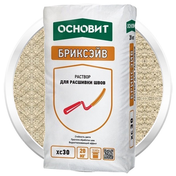 Раствор для расшивки швов Основит Бриксэйв XC-30 предназначен для отделки швов: кирпичной кладки, кладки из натурального и искусственного камня, клинкерной плитки и термопанелей. Раствор обладает консистенцией сырой земли. Может использоваться как для нового строительства, так и для обновления швов кладки. Подходит для внутренних и наружных работ. В качестве основания рекомендуются керамический, силикатный и клинкерный облицовочный кирпич, натуральный и искусственный камень, клинкерная плитка, термопанели. Работы следует выполнять при температуре воздуха и поверхности основания от 5 до 30 оС, влажность воздуха не должна превышать 70%. Свежие швы следует предохранять от слишком быстрого высыхания и беречь не менее 5-7 дней от воздействия неблагоприятных погодных условий (прямые солнечные лучи, сильный ветер, дождь). Преимущества применения раствора для расшивки швов Основит Бриксэйв XC-30: Удобство и простота выполнения работ. Защита от выцветания. Гладкий и ровный шов. Отсутствие высолов. Морозостойкость. Разнообразие цветовых решений. Основные свойства раствора для расшивки швов Основит Бриксэйв XC-30: Гранулометрический состав раствора обеспечивает удобство и простоту выполнения работ, создавая гладкий и ровный шов. Прочность материала ≥15 МПа обеспечивает максимальную долговечность и надежность в процессе эксплуатации. Состав растворов эффективно предотвращает появление высолов и белых подтеков на поверхности стен, а также обеспечивает стойкость цвета в процессе эксплуатации. Сухой способ нанесения расшивки позволяет выполнить работы максимально быстро. Разнообразие оттенков позволяет подобрать раствор в тон или контраст кирпичу.