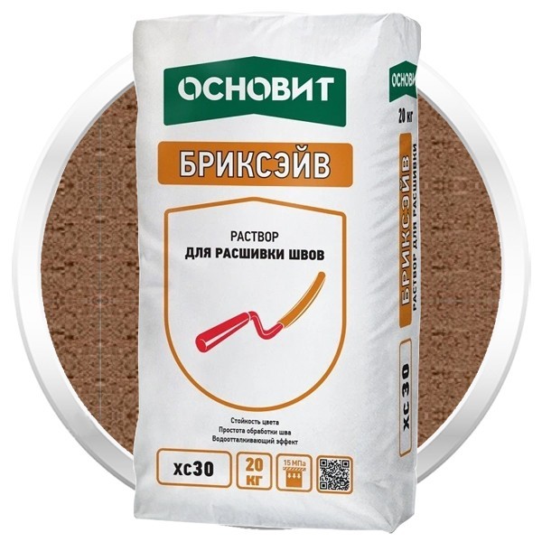 Раствор для расшивки швов Основит Бриксэйв XC-30 предназначен для отделки швов: кирпичной кладки, кладки из натурального и искусственного камня, клинкерной плитки и термопанелей. Раствор обладает консистенцией сырой земли. Может использоваться как для нового строительства, так и для обновления швов кладки. Подходит для внутренних и наружных работ. В качестве основания рекомендуются керамический, силикатный и клинкерный облицовочный кирпич, натуральный и искусственный камень, клинкерная плитка, термопанели. Работы следует выполнять при температуре воздуха и поверхности основания от 5 до 30 оС, влажность воздуха не должна превышать 70%. Свежие швы следует предохранять от слишком быстрого высыхания и беречь не менее 5-7 дней от воздействия неблагоприятных погодных условий (прямые солнечные лучи, сильный ветер, дождь). Преимущества применения раствора для расшивки швов Основит Бриксэйв XC-30: Удобство и простота выполнения работ. Защита от выцветания. Гладкий и ровный шов. Отсутствие высолов. Морозостойкость. Разнообразие цветовых решений. Основные свойства раствора для расшивки швов Основит Бриксэйв XC-30: Гранулометрический состав раствора обеспечивает удобство и простоту выполнения работ, создавая гладкий и ровный шов. Прочность материала ≥15 МПа обеспечивает максимальную долговечность и надежность в процессе эксплуатации. Состав растворов эффективно предотвращает появление высолов и белых подтеков на поверхности стен, а также обеспечивает стойкость цвета в процессе эксплуатации. Сухой способ нанесения расшивки позволяет выполнить работы максимально быстро. Разнообразие оттенков позволяет подобрать раствор в тон или контраст кирпичу.