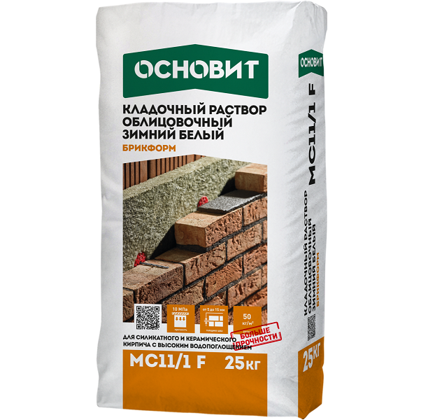 Раствор Основит Брикформ МС11/1 F кладочный зимний белый 25 кг