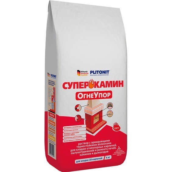 Цементная смесь Plitonit Суперкамин Огнеупор предназначена для кладки огнеупорных кирпичей, оштукатуривания и ремонта печей, каминов, дымоходов, барбекю, гриля внутри и снаружи. Раствор усилен армирующими термостойкими волокнами, обладает высокой технологичностью и водоудерживающей способностью, а также водостойкостью, трещиностойкостью и низким расходом материала. Цементная смесь Plitonit Суперкамин Огнеупор имеет высокую жаро- и термостойкость, а также пластичность, атмосферостойкость и водостойкость. Максимальная температура эксплуатации, °С 1200.
