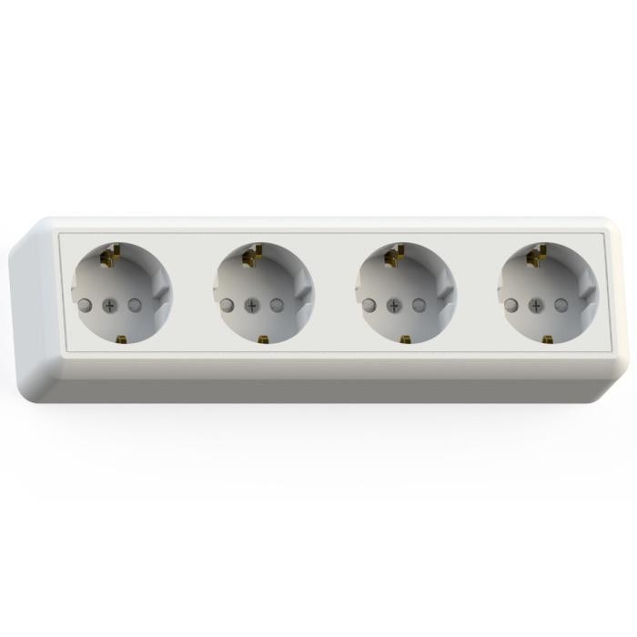 Розетка Кунцево-Электро Оптима РА16-403 четырехместная с заземлением и защитными шторками белая