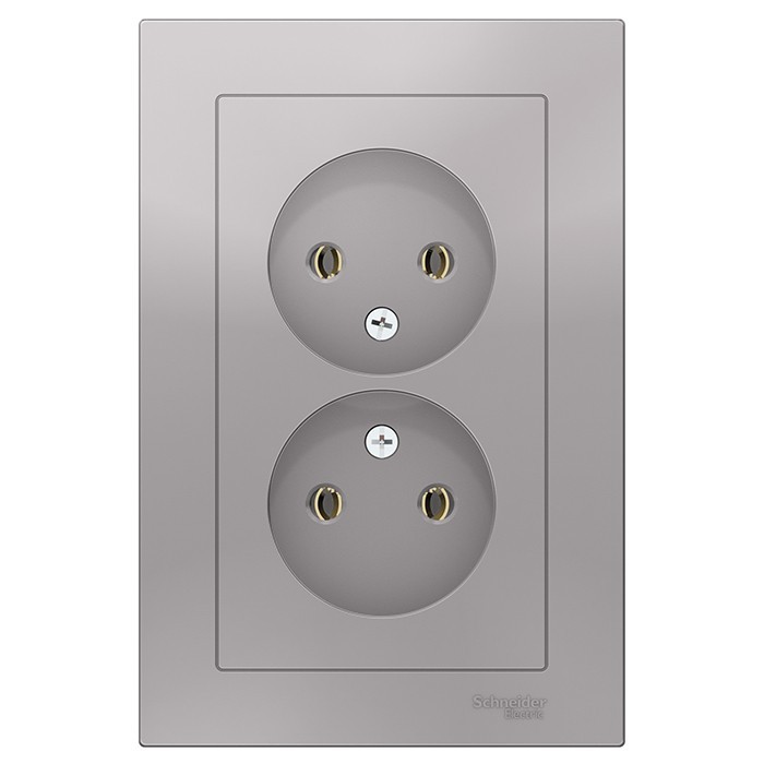 Розетка Schneider Electric AtlasDesign ATN000320 двухместная без заземления алюминий