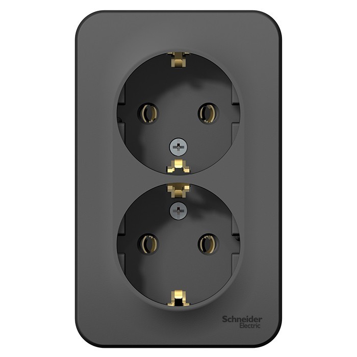 Розетка Schneider Electric Blanca BLNRA010216 двухместная с заземлением и изолирующей пластиной антрацит