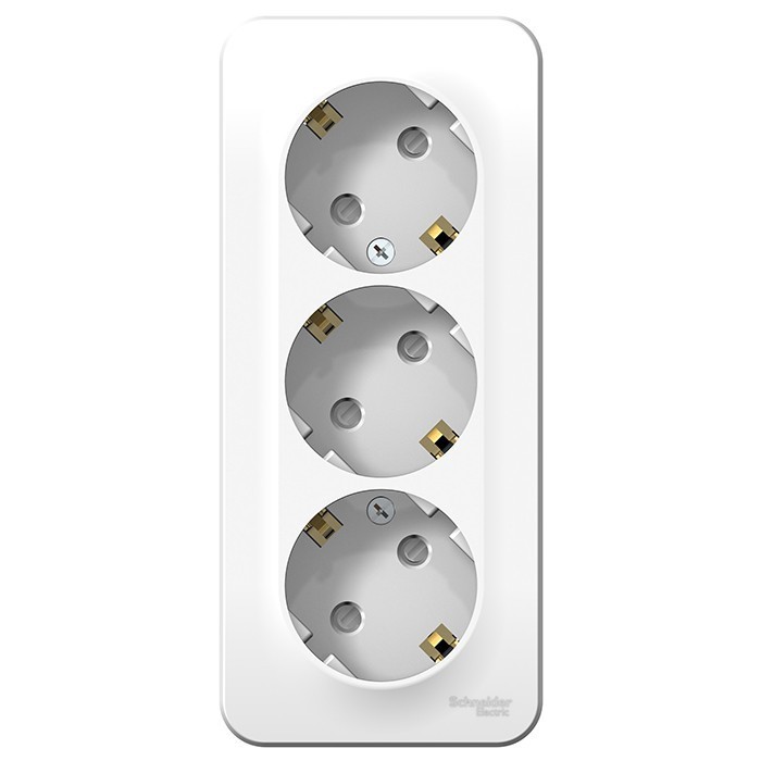 Розетка Schneider Electric Blanca BLNRA011311 трехместная с заземлением и защитными шторками с изолирующей пластиной белая