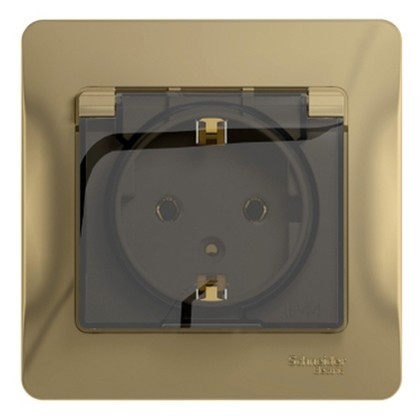Розетка Schneider Electric Glossa GSL000446 одноместная с заземлением и защитными шторками с крышкой титан
