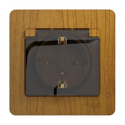 Розетка Schneider Electric Glossa GSL000546 одноместная с заземлением и защитными шторками с крышкой дуб