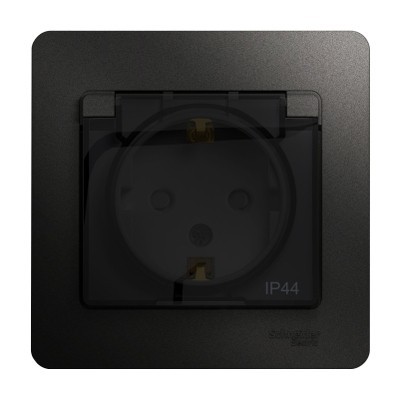 Розетка Schneider Electric Glossa GSL000748 одноместная с заземлением и защитными шторками с крышкой антрацит