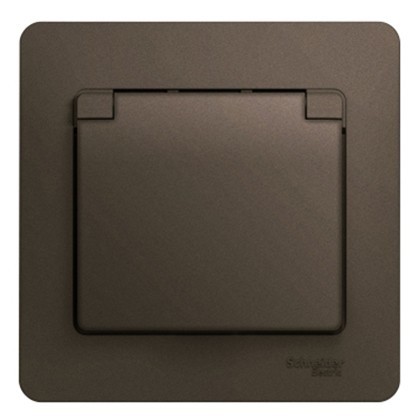 Розетка Schneider Electric Glossa GSL000846 одноместная с заземлением и защитными шторками с крышкой шоколад