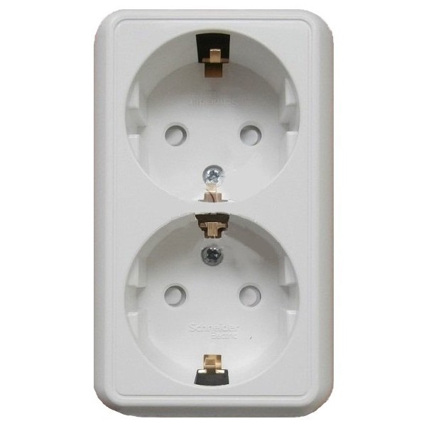 Двухместная электрическая розетка с заземляющим контактом открытой установки Прима RA16-214-B предназначена для быстрого подключения к электросети различных бытовых электроприборов. Конструктивно механизм электророзетки состоит из термостойкого электротехнического композитного материала, заземляющего контакта, электрических контактов для электровилки, выполненных из высокоупругой фосфористой бронзы, и клемм для фиксации токопроводящего провода. Розетка с заземлением помогает избежать неприятных последствий при перебоях с электричеством. Корпус розетки произведен из износостойкого ABS-пластика белого цвета. Розетка Schneider Electric Прима RA16-214-B оснащена защитными шторками. Данная функция предохраняет розетку от случайного попадания внутрь посторонних предметов. Принцип работы шторок очень прост: при отсутствии вилки отверстия для нее закрыты пластиковой задвижкой. Чтобы ее сдвинуть нужно надавить одновременно в оба отверстия с некоторым усилием. Розетка Schneider Electric Прима RA16-214-B для открытой проводки монтируется на ровную поверхность стены. Номинальное напряжение электросети составляет 250 В с номинальным током не более 16А. Степень защиты розетки - IP20. Серия Прима от Schneider Electric - классика российского рынка электроустановочных изделий, одна из самых продаваемых серий. Высокое качество исполнения, надежный и неприхотливый механизм снискали заслуженное признание клиентов. Прима - наиболее подходящая серия для проектов муниципального и социального жилья, созданная в тесном сотрудничестве со специалистами ведущих домостроительных комбинатов и проектных организаций. Преимущества розетки Schneider Electric: Корпус изготовлен из высококачественного пластика. В механизме применяется экологичный термостойкий материал. Розетка обеспечивает долговременный надежный электрический контакт как с евровилками, так и с бытовыми вилками, имеющими маленький диаметр контактных штырей, что обеспечено оригинальной конструкцией механизмов. В контактных группах используется высококачественная латунь. Надежно монтируется на любую поверхность.