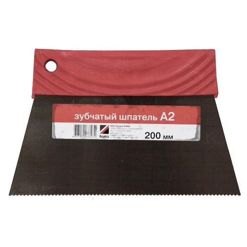 Зубчатый шпатель Homa А2 предназначен для нанесения клеевых материалов на основание при укладке ПВХ покрытий. Обеспечивает равномерное и экономичное нанесение клея. Допускается многократное использование с контактными водно-дисперсионными клеями, одноразовое использование с полиуретановыми клеями. Использование зубчатого шпателя имеет ряд преимуществ: уменьшение расхода клея, получение нужной гребенки, в результате чего клей не вылазит через стыки, уменьшается время открытой выдержки клея. Конструкция инструмента помогает равномерно распределять клеевой слой необходимой толщины по поверхности. Мелкие зубцы удобны для работы с разжиженными составами низкой вязкости. Широкая рабочая часть способствует быстрой и продуктивной работе. Немного практики, и у Вас получатся идеальные клеевые рифы, которые обеспечат надежную фиксацию напольного покрытия и малый расход клея!