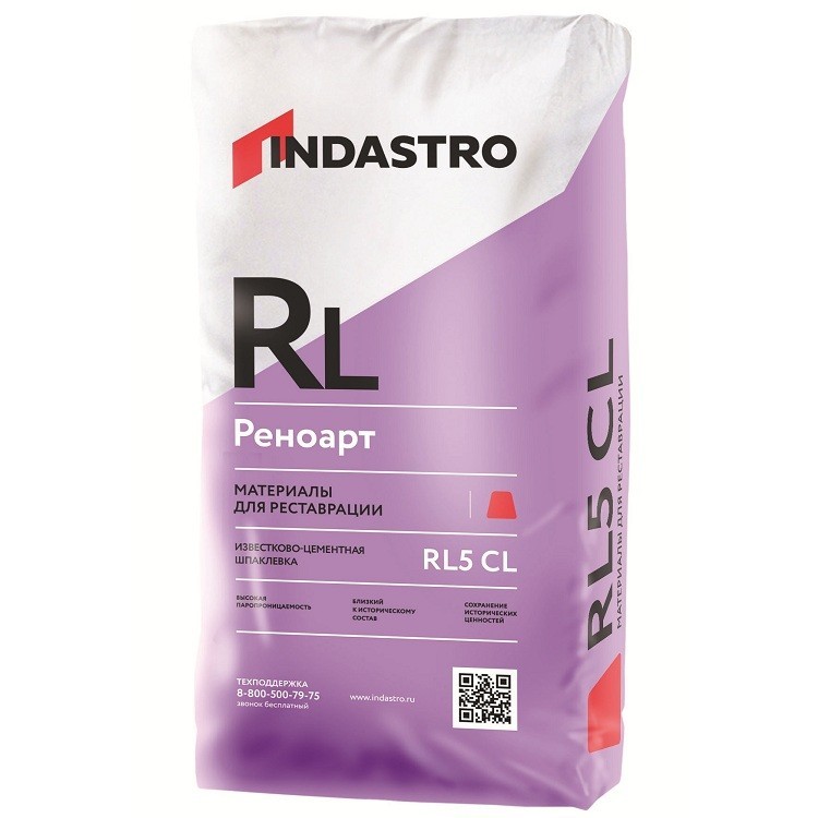 Шпатлевка известково-цементная Индастро Реноарт RL5 CL предназначена для финишного выравнивания стен при реставрационных и отделочных работах. Купить шпатлевку рекомендуется для отделки фасадов, а также для внутренних работ. Применяется сухая строительная смесь для работ по кирпичным, бетонным, газобетонным основаниям, известковым, известково-цементным, цементно-известковым штукатуркам. Финишная шпатлевка рекомендуется под последующее нанесение декоративных покрытий. Особенности строительной смеси Индастро Реноарт RL5 CL: Паропроницаемость. Трещиностойкость. Атмосферостойкость. Слой нанесения до 5 мм. Применение. Основание должно быть чистым, сухим, непромерзшим, без высолов, впитывающим, немелящим, неосыпающимся, прочным. Старые осыпающиеся основания необходимо укрепить (например, укрепляющей пропиткой). Старые лакокрасочные покрытия должны быть полностью удалены. Перед нанесением фасадной шпаклевки все имеющиеся на основании щели и выбоины необходимо заделать специально предназначенными для этого продуктами TM Indastro. Для приготовления строительной смеси содержимое мешка при постоянном перемешивании высыпать в емкость с чистой водой (количество воды указано на упаковке). Перемешивание производится механизированным либо ручным способом. Раствор необходимо выдержать 3-5 минут, затем повторно перемешать. Раствор можно использовать в течение 30 минут с момента затворения водой. Для приготовления раствора и проведения работ использовать только чистые емкости, инструменты и воду. Сухие впитывающие поверхности необходимо предварительно смачивать водой. Финишная шпатлевка наносится шпателем слоем 0,5-5 мм за один раз. При необходимости многослойного нанесения каждый последующий слой наносится после схватывания предыдущего (~3-4 часа). При необходимости, производится смачивание водой между слоями. Последний слой после отвердевания выравнивается зашкуриванием. Свежеошпаклеванные поверхности следует защищать от быстрого высыхания в течение 2 дней. Время твердения всех шпаклевочных слоев перед нанесением последующих материалов (декоративной штукатурки, окраски) – не менее 5 дней на 5 мм толщины.