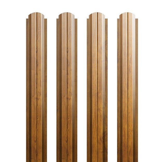 Штакетник П-образный фигурный Grand Line Print 0,5 мм Golden Dub - идеальный вариант для дачи. Штакетник металлический — традиционный материал, возводимый в качестве ограждений для жилых и промышленных объектов. Заборы из металлического штакетника отличаются наличием зазоров между штакетинами, отчего они меньше страдают от ветровых нагрузок и меньше деформируются. Эти зазоры также обеспечивают хорошую циркуляцию воздуха и попадание достаточного количества солнечного света, что особенно важно для роста растений и созревания урожая. Штакетник выполнен из cтали толщиной 0,5 мм с повышенным содержанием цинка в защитно-металлическом слое и покрыт пленкой из полиэстера. Покрытие Colority® Print – настоящее открытие для тех, кто предпочитает эстетику природной красоты для качественной и оригинальной отделки своего дома. Естественный природный материал, воплощенный в металле, придаст Вашему дому неповторимый стиль и прослужит долгие годы. Основой покрытия является полиэфир, наносимый в несколько слоев офсетным способом. Толщина покрытия составляет 30 микрон. Изображение наносится методом офсетной печати по принципу комбинации 4 основных цветов, что позволяет получить четкий и устойчивый рисунок с разнообразными и естественными оттенками. Покрытие Colority Print наносится на лицевую сторону изделий. Изнанка окрашивается слоем обычного полиэстера. Особенности покрытия Colority® Print: толщина полимерного покрытия 30 мкм; защитный слой покрытия Zn 275; твердость покрытия: 2Н; не требует обработки антисептическими и противопожарными средствами; высокая стойкость к механическим повреждениям; защита от коррозии; схожесть с натуральными материалами; поверхность: матовая, текстурированная; гарантия на сквозную коррозию: 20 лет; гарантия на внешний вид: 10 лет. Штакетник имеет стандартную П-образную форму. Ширина штакетин - 100 мм. Это простой и недорогой вариант забора. Для усиления посередине изделия сделана канавка. Верх закругленный.Количество штакетин следует рассчитывать исходя из 7 штакетин на 1 погонный метр забора. Преимущества металлического штакетника Grand Line: Штакетник окрашен с двух сторон. Обратная сторона в цвет лицевого покрытия. Прочность изделия. Этого удалось добиться благодаря использованию тонколистового проката с большим слоем цинка и современных полимерных покрытий. Легкость монтажа. Монтаж, невероятно прост - из инструментов вам понадобится практически только один шуруповерт. Имитирует традиционный деревенский забор. Добавьте вашему дому немного сельского шарма! Не требует обслуживания на протяжении всего срока эксплуатации (подкраски и т. д.). Дополнительное ребро жесткости. Дополнительное ребро жесткости делает ваше ограждение более надежным. Удобство транспортировки и хранения. Вам будет просто найти место, где расположить штакетник при транспортировке и хранении. Гарантированная долговечность! Вы можете быть уверены в качестве штакетника на всем протяжении срока эксплуатации. Фирменная гарантия Grand Line является самой большой среди российских производителей и достигает 35 лет! Для полной комплектации забора из металлического штакетника дополнительно приобретаются столбы и лаги. Металлический штакетник Grand Line объединяет в себе достоинства ограждений из деревянного штакетника и профнастила. Его не назовешь сугубо декоративны