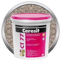 Декоративная штукатурка Ceresit CT 77 Мозаичная предназначена для изготовления тонкослойных декоративных покрытий с «мозаичной» фактурой на бетоне, цементных и гипсовых штукатурках, гипсокартоне, древесностружечных плитах и т.д. внутри и снаружи зданий. Рекомендована строительная смесь Ceresit CT 77 для систем фасадных теплоизоляционных композиционных (СФТК) с теплоизоляционным слоем из пенополистирольных плит (Ceresit EPS). Штукатурка имеет зернистую фактуру из разноцветной кварцевой или мраморной крошки. После высыхания представляет собой стекловидное, очень прочное, стойкое к загрязнению и истиранию покрытие, способное перекрывать мелкие трещины. Применяется строительная смесь в коридорах, холлах, входных группах, цоколях, парапетах и т.д. Особенности декоративной штукатурки Ceresit CT 77 Мозаичная: готова к применению; устойчива к истиранию и загрязнению; атмосферо- и морозостойкая; пригодна для внутренних и наружных работ; экологически безопасна. Работы следует выполнять в сухих условиях, при температуре воздуха и основания от +10 до +30°C и относительной влажности воздуха не выше 80%. Также запрещается выполнять отделку фасада при прямом воздействии солнечных лучей в жаркую погоду, при сильном ветре, а также во время дождя и по мокрым поверхностям после дождя. При работе следует пользоваться инструментами из нержавеющих материалов. Штукатурное покрытие в течение 3 суток после нанесения следует предохранять от контакта с водой и понижения температуры ниже +10°C. Внимание! Наличие в составе натуральной каменной крошки может привести к небольшим различиям во внешнем виде покрытия, поэтому на одной поверхности рекомендуется использовать штукатурку одной партии.