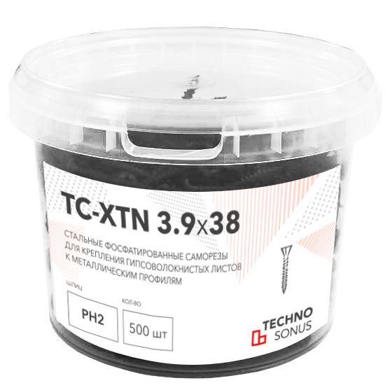Специальные металлические саморезы ТС-XTN 38 предназначены для фиксации усиленного звукоизоляционного гипсокартона АкустикГипс ГКЛЗ к каркасу из металлических профилей. Используются для стен, потолков, перегородок. Саморезы имеют разнонаправленную резьбу и не требуют предварительного засверливания. Применяются для крепления двух слоев гипсокартонных листов.
