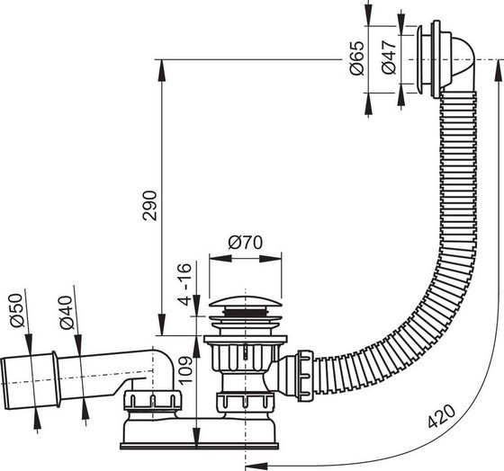Трубный. Скорость слива - 30 л/мин. Гидрозатвор. Диаметр присоединения - 50 мм. Диаметр слива - 52 мм. Направление выпуска - Горизонтальный (в стену) |