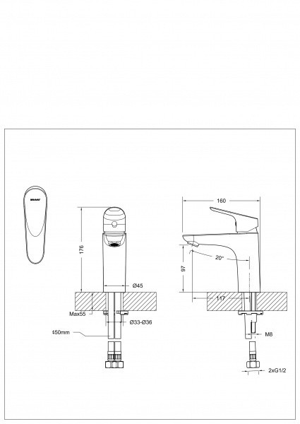 Управление - однорычажное. Крепление - на раковину. Длина излива - 117 мм. Дополнительные функции: Экономия расхода воды. Механизм - керамический картридж |
