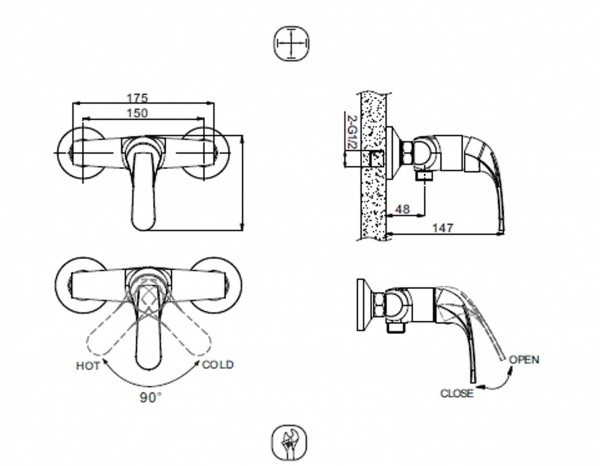 Управление - однорычажное. Крепление - на стену. Дополнительные функции: Экономия расхода воды. Механизм - керамический картридж |