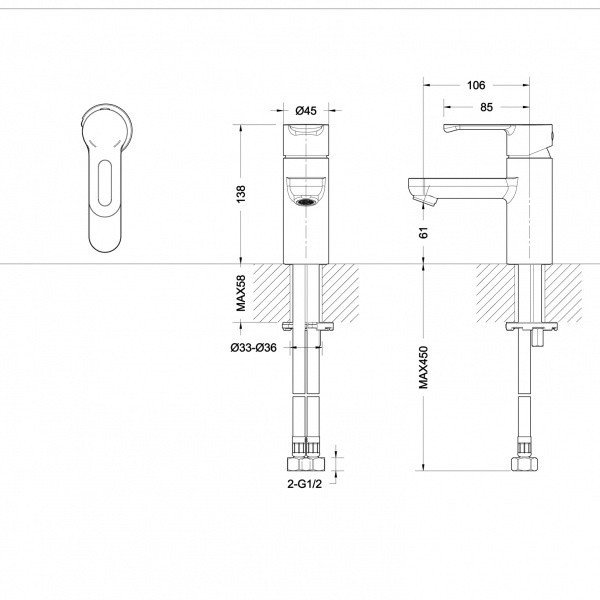 Управление - однорычажное. Крепление - на раковину. Длина излива - 106 мм. Дополнительные функции: Экономия расхода воды. Механизм - керамический картридж |